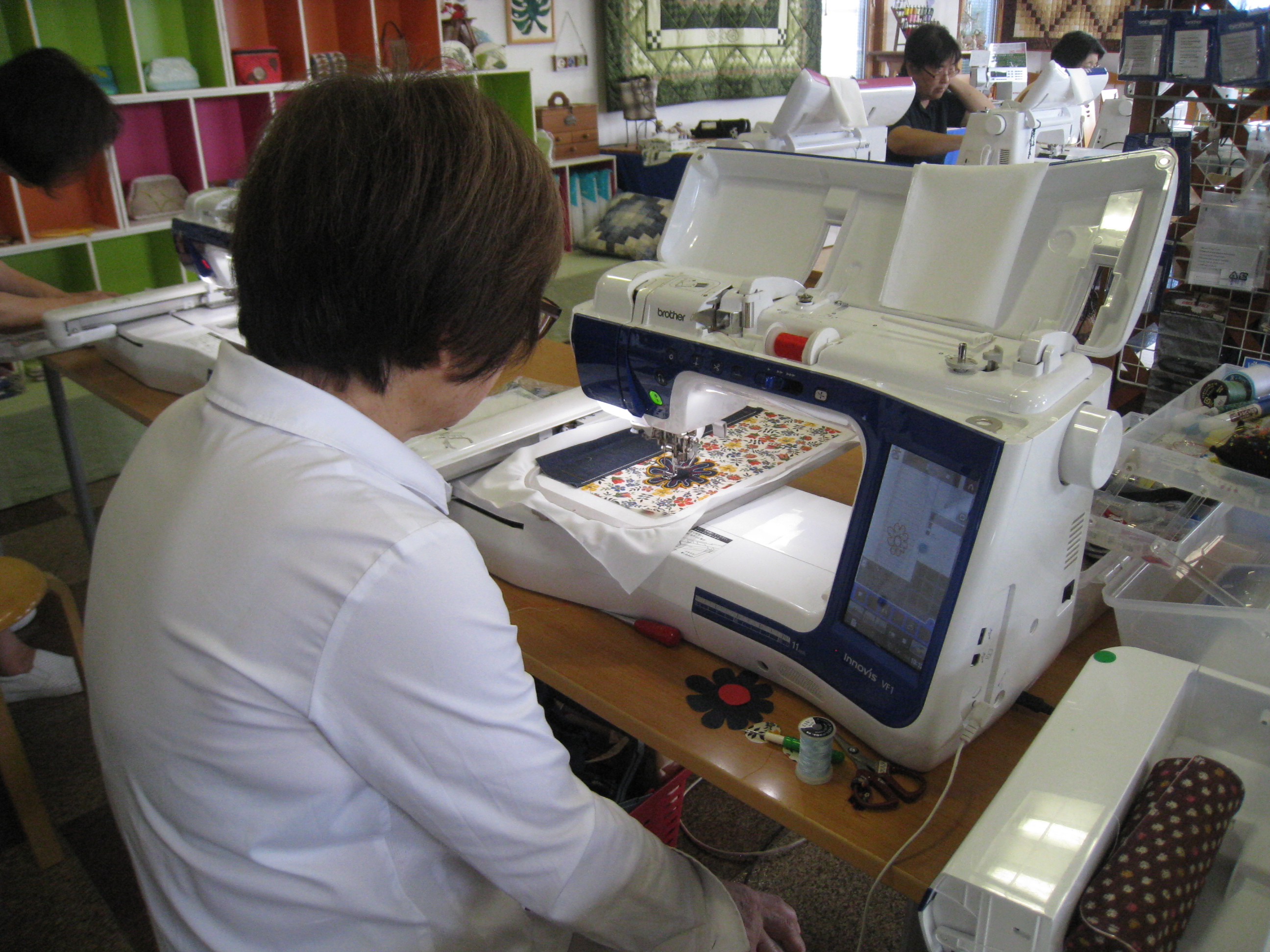 した。吉森さん半年ぶりの来店です。昨日は新しく発売される『In The Hoop刺しゅう』