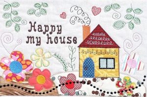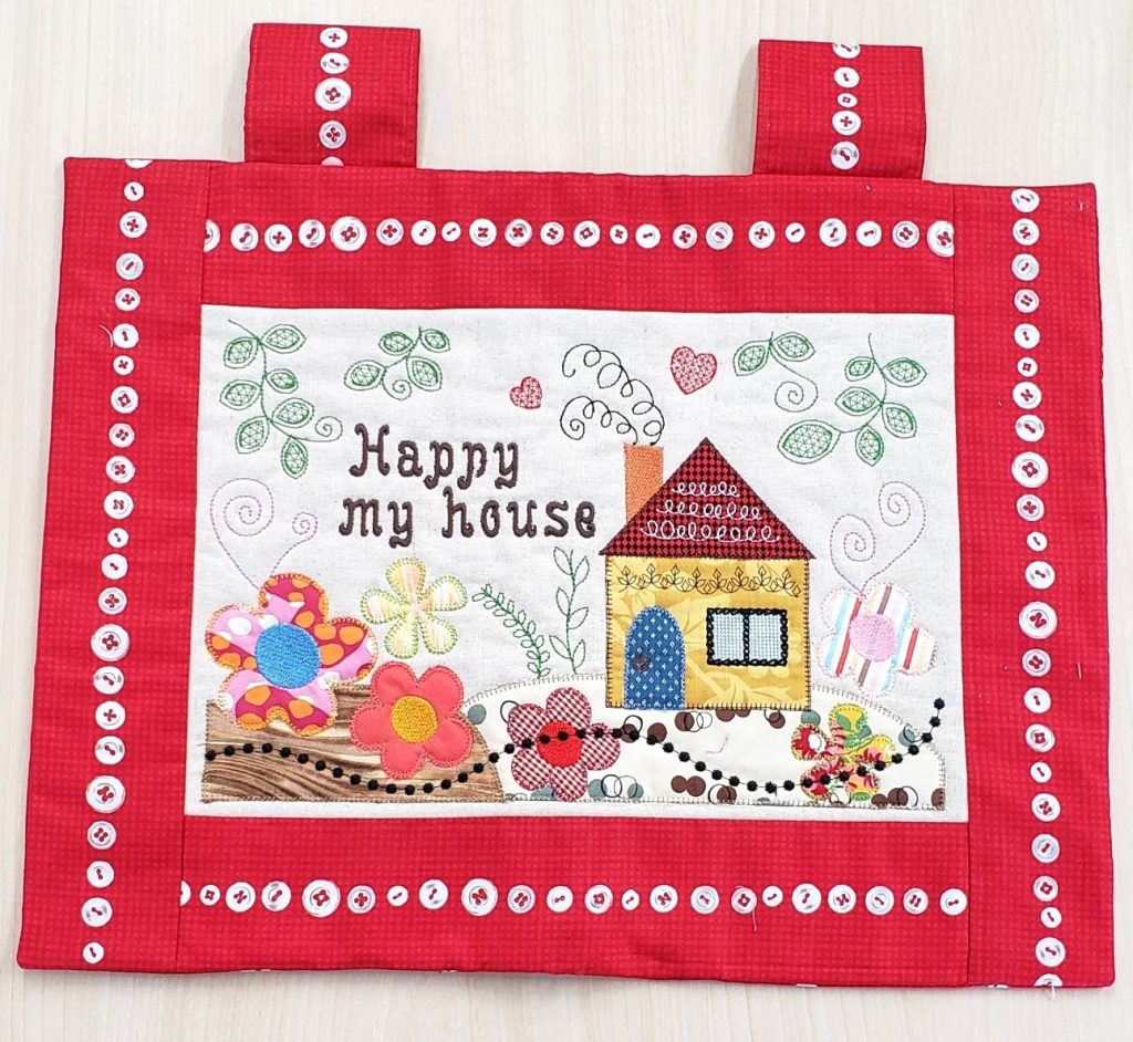 お好みの生地を選び、好きな色の糸をミシンにセット♪アップリケ刺しゅうでキルトハウスのタペストリーをつくります。