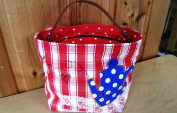 ブラザー販売より講師を迎えての特別講習会です。ティーポットの柄がとてもかわいいミニバッグです。タテ15cm×ヨコ20cm位で、マチは8cm程。ファスナーをしめれば中が見えないので、小さいですが重宝しそうです。